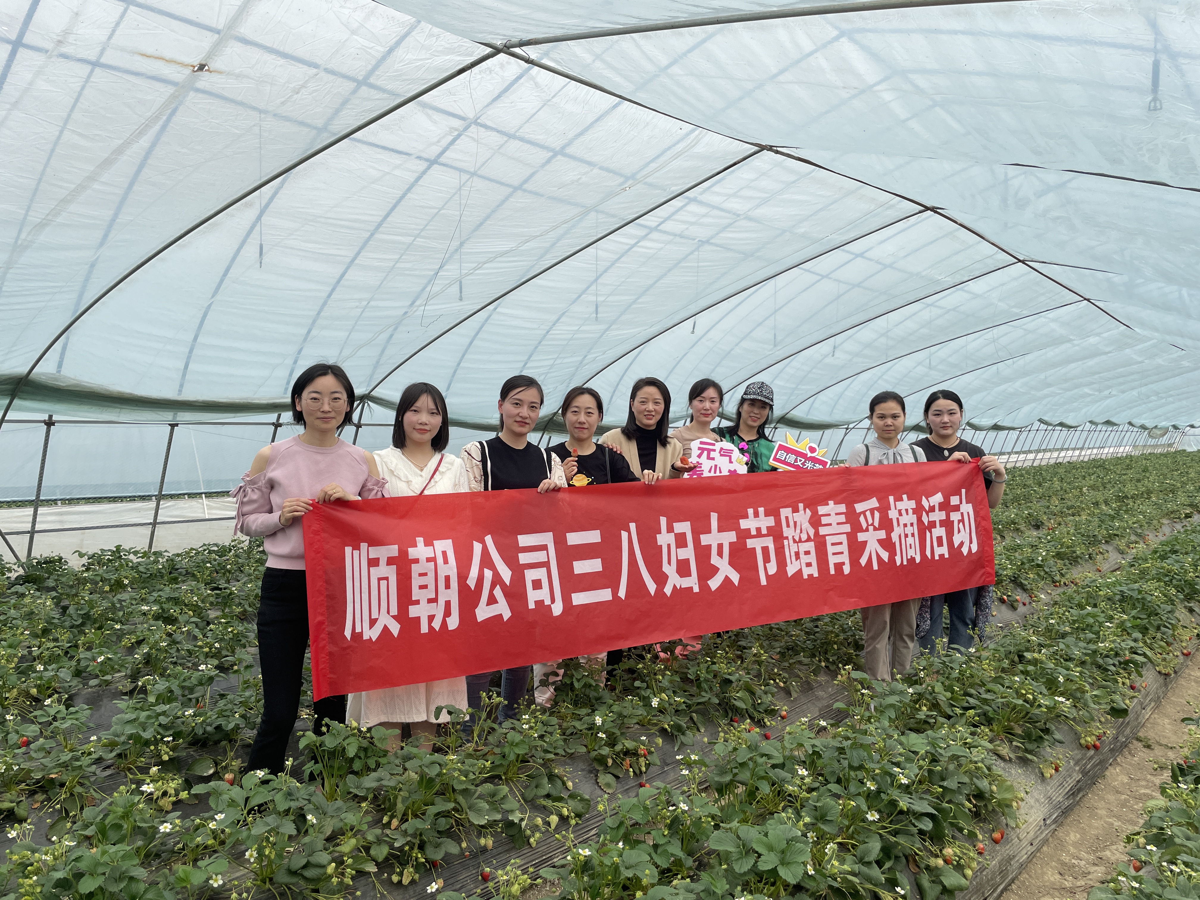 為慶祝三八婦女節,豐富女職工的業余文化生活,3月8日下午,順朝公司組織女職工開展戶外踏青采摘草莓活動。