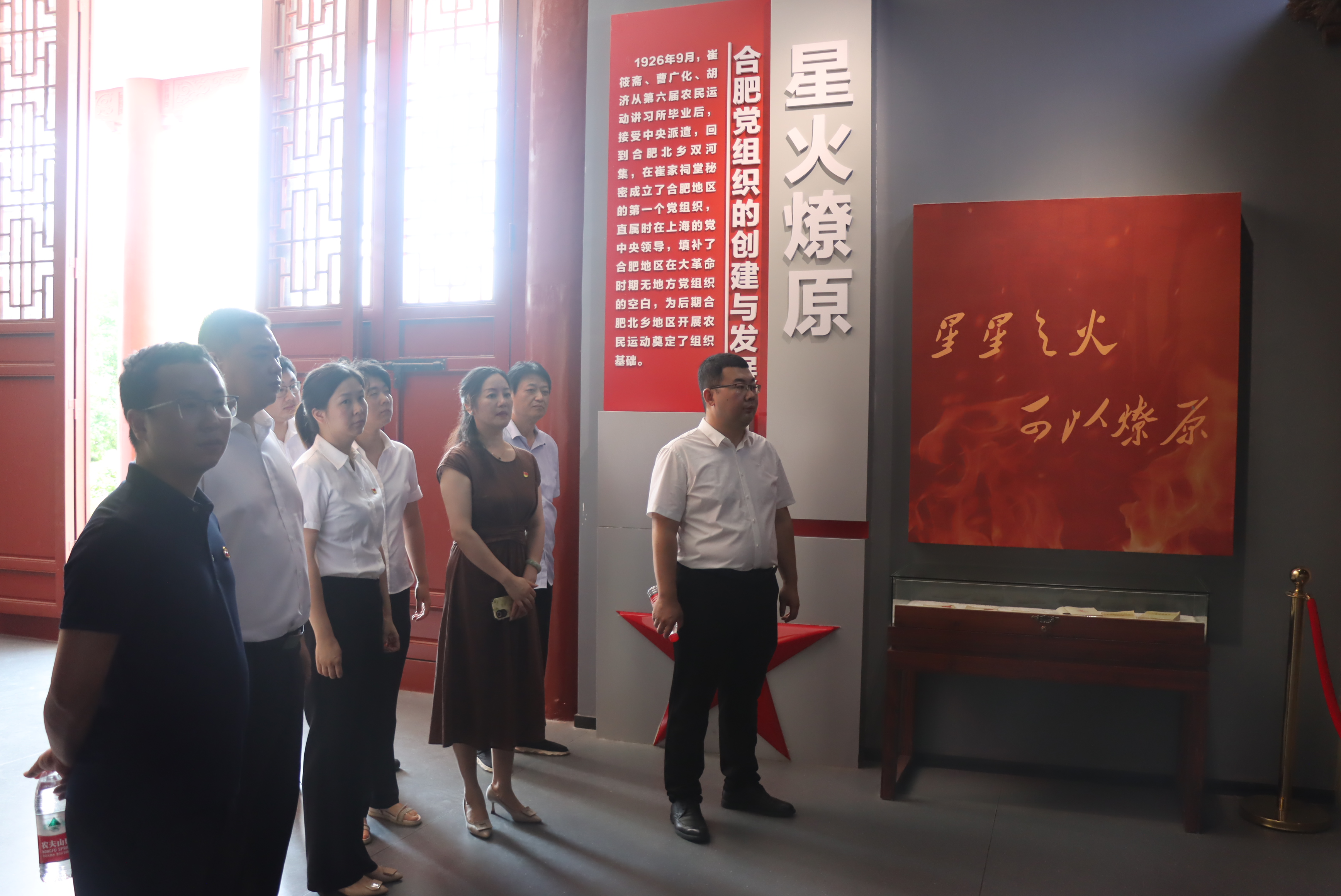 中共合肥北鄉支部紀念館是合肥市愛國主義教育基地、黨史教育基地、黨風廉政建設教育基地同時也是為紀念合肥地區第一個中國共產黨組織(中共合肥北鄉支部)而建大家跟著講解員認真了解了中共合肥北鄉支部創建歷史背景與開展革命光輝歷程走進崔筱齋紀念館,大家在簡樸莊重的展廳里認真了解了崔筱齋烈士的生平履歷、革命歷程。展廳里珍貴的文物實物、翔實的檔案資料,吸引大家駐足良久并詳細詢問有關情況深入了解了合肥北鄉黨支部艱苦卓絕的奮斗史和光輝歷程。懷著無比崇敬的心情,黨員黨旗重溫入黨誓詞