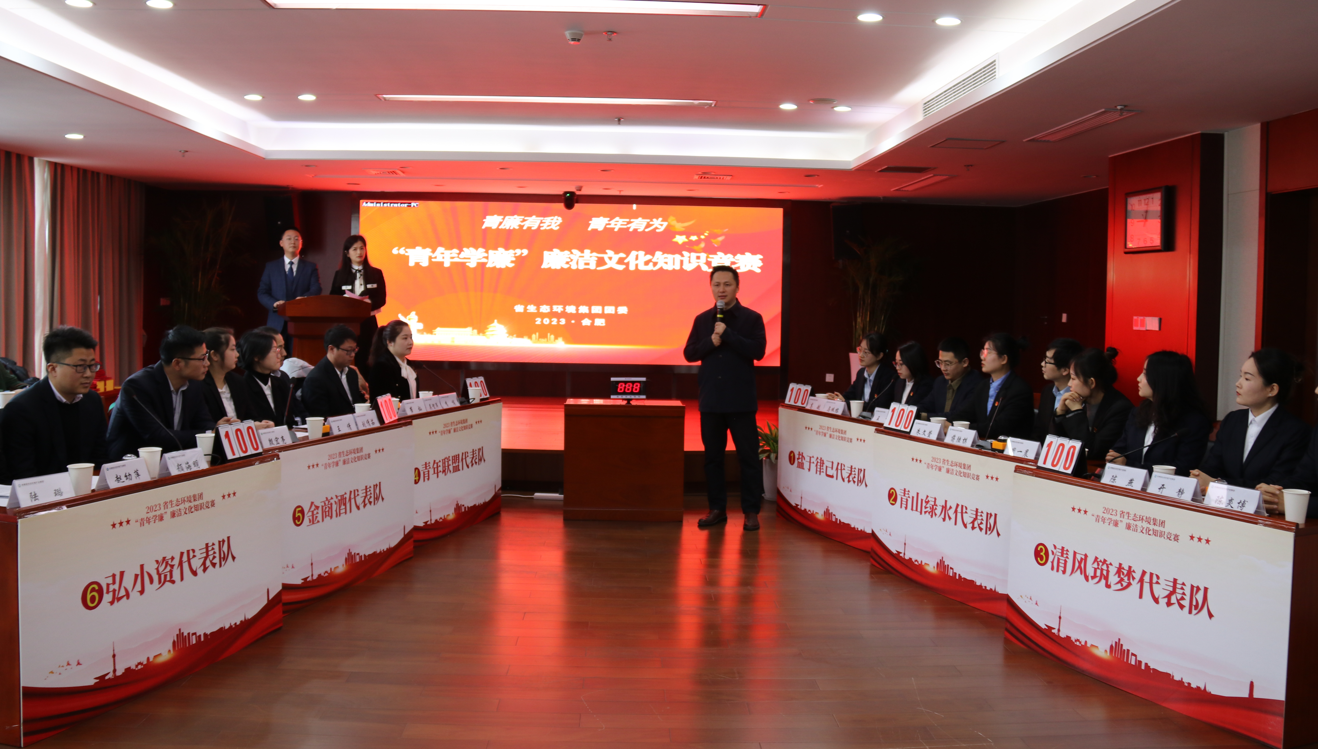 為進(jìn)一步加強(qiáng)新時代廉潔文化建設(shè),強(qiáng)化廣大青年干部職工廉潔自律意識,增強(qiáng)青年干部廉潔從政、廉潔用權(quán)、廉潔修身、廉潔齊家的思想自覺,促進(jìn)廉潔文化入腦入心,12月29日上午,省生態(tài)環(huán)境集團(tuán)團(tuán)委舉辦“青年學(xué)廉”廉潔文化知識競賽,集團(tuán)公司黨委委員、紀(jì)委書記繆磊出席活動并致辭。