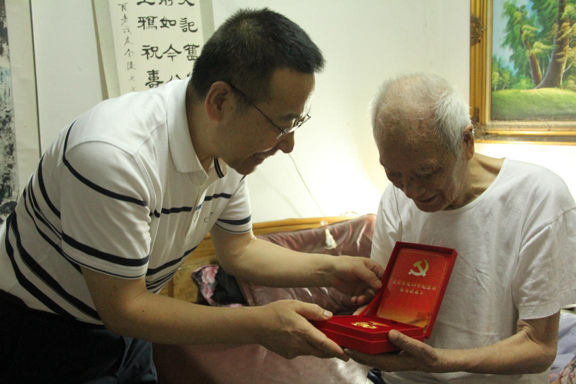 省鹽業集團黨委書記、董事長馬占文來到省鹽業公司離休干部、95歲老黨員董仁發家中,與老人及其家屬親切交談,詳細詢問和了解老人的健康生活狀況以及生活中存在的困難,聽老人講當年的革命故事、工作經歷,感謝老人對黨和國家多年來的忠誠和擁護,為老人頒發“光榮在黨50周年”紀念章。集團黨委委員、副總經理、職工董事顏宗華先后來到老黨員王玉華、張富貴家中走訪慰問,為他們送上黨組織的關切和祝福,并為兩位老黨員佩戴“光榮在黨50周年”紀念章。
