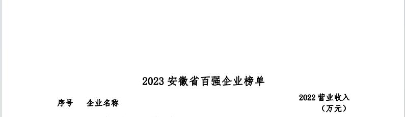 2023年11月22日,安徽省企業聯合會、安徽省企業家聯合會舉辦了2023安徽百強企業發布會暨企業家論壇,現場發布了“2023安徽省百強企業”榜單,及“2023安徽省制造業百強企業 ”“2023安徽省服務業百強企業”榜單。該活動迄今已經連續開展十九屆,基本囊括了安徽營收規模排在前列的各類企業。