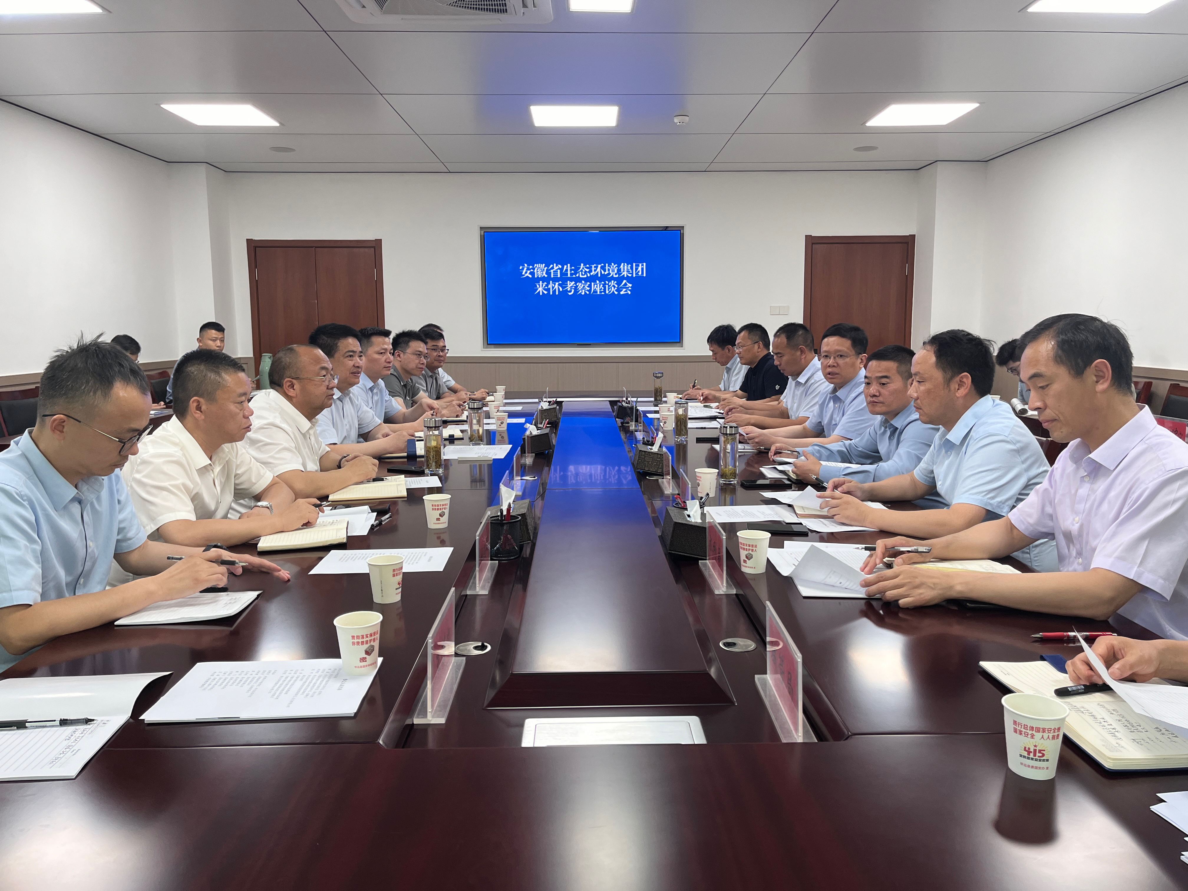 6月17日,省生態環境集團黨委書記、董事長羅太忠拜訪蚌埠市委常委、懷遠縣委書記潘君齊,懷遠縣委副書記、縣長高東升,雙方舉行工作會談。