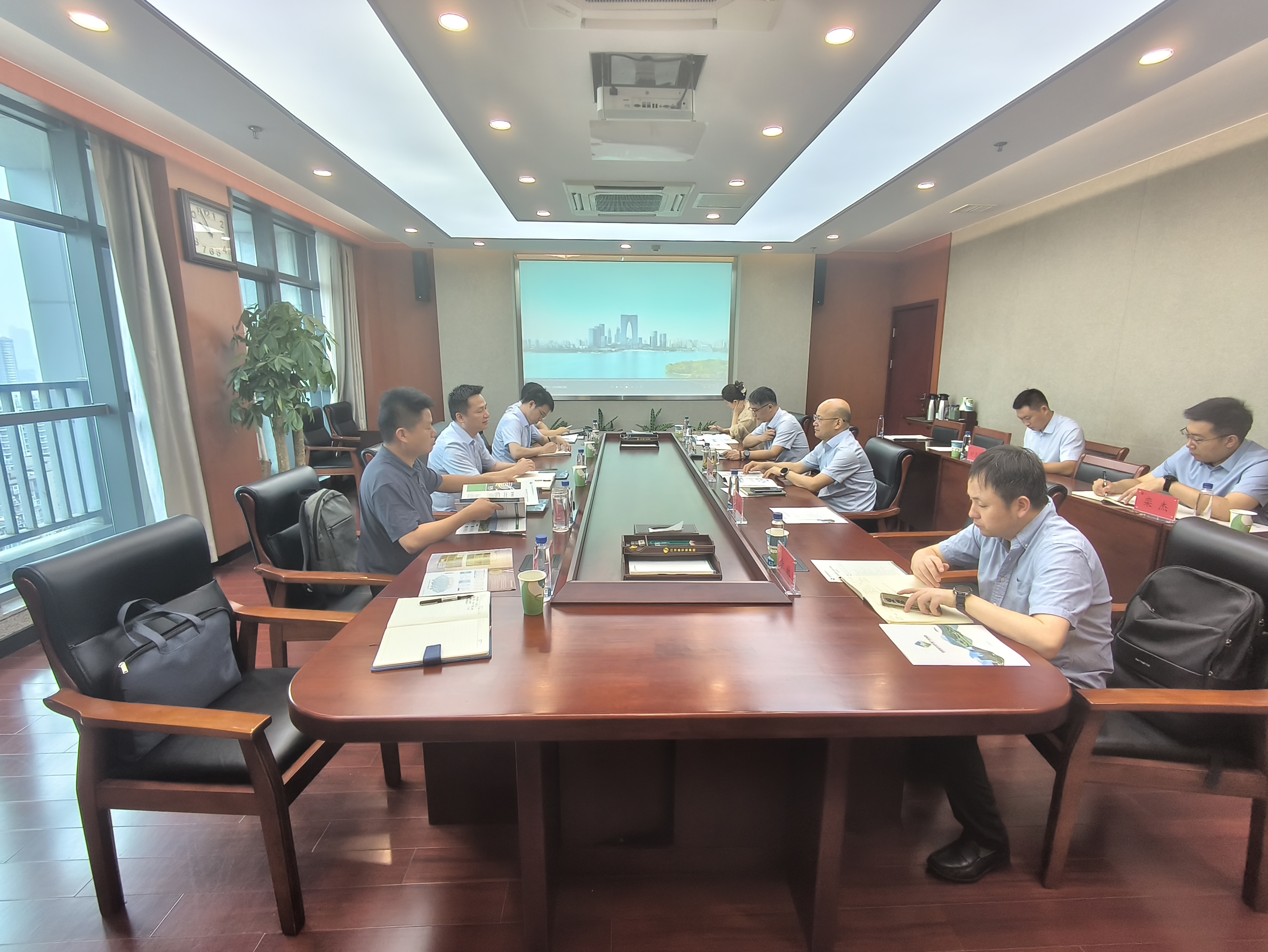 在江蘇省環(huán)保集團(tuán),繆磊與江蘇省環(huán)保集團(tuán)黨委委員、副總經(jīng)理陸繼根舉行工作會(huì)談,雙方重點(diǎn)圍繞業(yè)務(wù)板塊布局、市場開發(fā)、科技創(chuàng)新、市縣合資合作以及省直廳局有關(guān)支持政策等方面進(jìn)行了深入交流。繆磊指出,安徽省生態(tài)環(huán)境集團(tuán)在努力承接好安徽省生態(tài)文明建設(shè)重大戰(zhàn)略、重大工程、重點(diǎn)任務(wù)的同時(shí),全力服務(wù)和融入長三角一體化發(fā)展大局,全面加強(qiáng)與長三角省級(jí)環(huán)保集團(tuán)的交流和合作,江蘇省環(huán)保集團(tuán)成立以來采取了許多創(chuàng)新舉措、承接了一批重點(diǎn)任務(wù)和重大工程,值得學(xué)習(xí)和借鑒,希望雙方能夠進(jìn)一步建立合作對(duì)接機(jī)制,攜手共建綠色美麗長三角。陸繼根對(duì)繆磊一行的到訪表示歡迎,詳細(xì)介紹了江蘇省環(huán)保集團(tuán)的發(fā)展歷程、職能定位、板塊布局、科技創(chuàng)新及業(yè)務(wù)開展情況,希望雙方進(jìn)一步加強(qiáng)了解、互通有無,尋求合作切入點(diǎn),加快推動(dòng)合作,實(shí)現(xiàn)互利共贏。