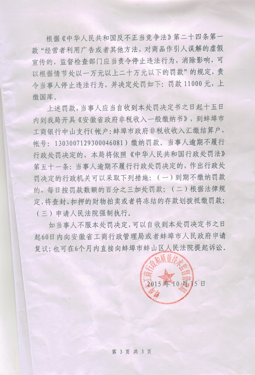 蚌埠公司在網上發現這一情況后,在第一時間予以網上截圖,并書面致函向市工商質檢局反映情況,提供相關證據資料。公司主要負責人也主動前往市工商質檢局向該局主要領導當面進行情況反映和溝通。
