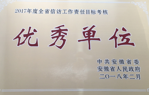 2月4日,中共安徽省委辦公廳、安徽省人民政府辦公廳召開全省信訪工作會議,會上對2017年度省屬企業信訪工作責任制目標考核得分列前15名省屬企業進行了表彰,省鹽業集團公司等15家省屬企業榮獲“2017年度全省信訪工作責任目標考核優秀單位”稱號。