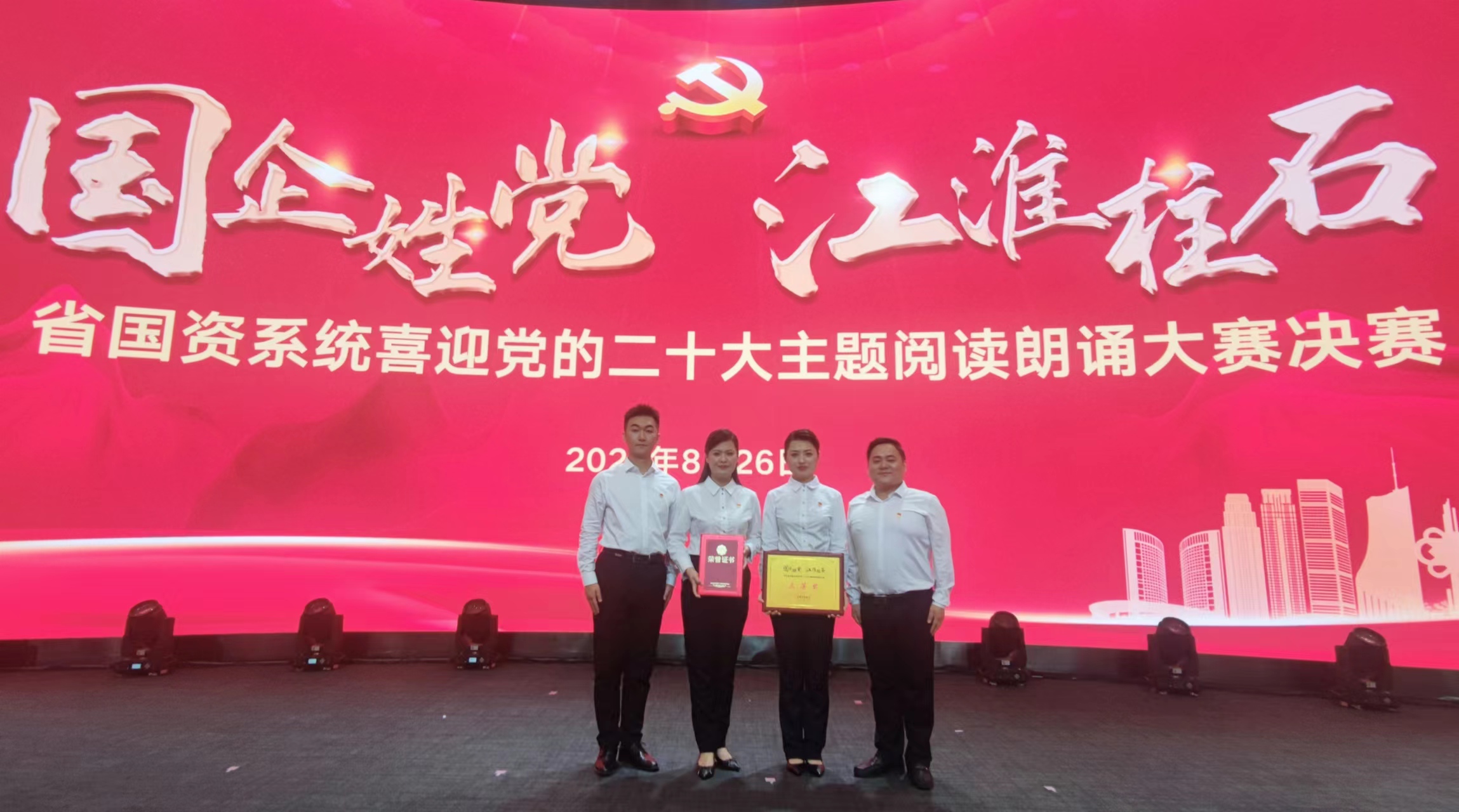8月26日下午,“國企姓黨 江淮柱石”省國資系統(tǒng)喜迎黨的二十大主題閱讀朗誦大賽決賽在中安創(chuàng)谷科技園全球路演中心舉行,集團(tuán)公司4名青年黨員代表出戰(zhàn),經(jīng)過激烈角逐,最終榮獲本次比賽三等獎,在全省國資系統(tǒng)展示了安徽鹽業(yè)人敢于擔(dān)當(dāng)、頑強(qiáng)拼搏、奮勇爭先的精神風(fēng)貌。