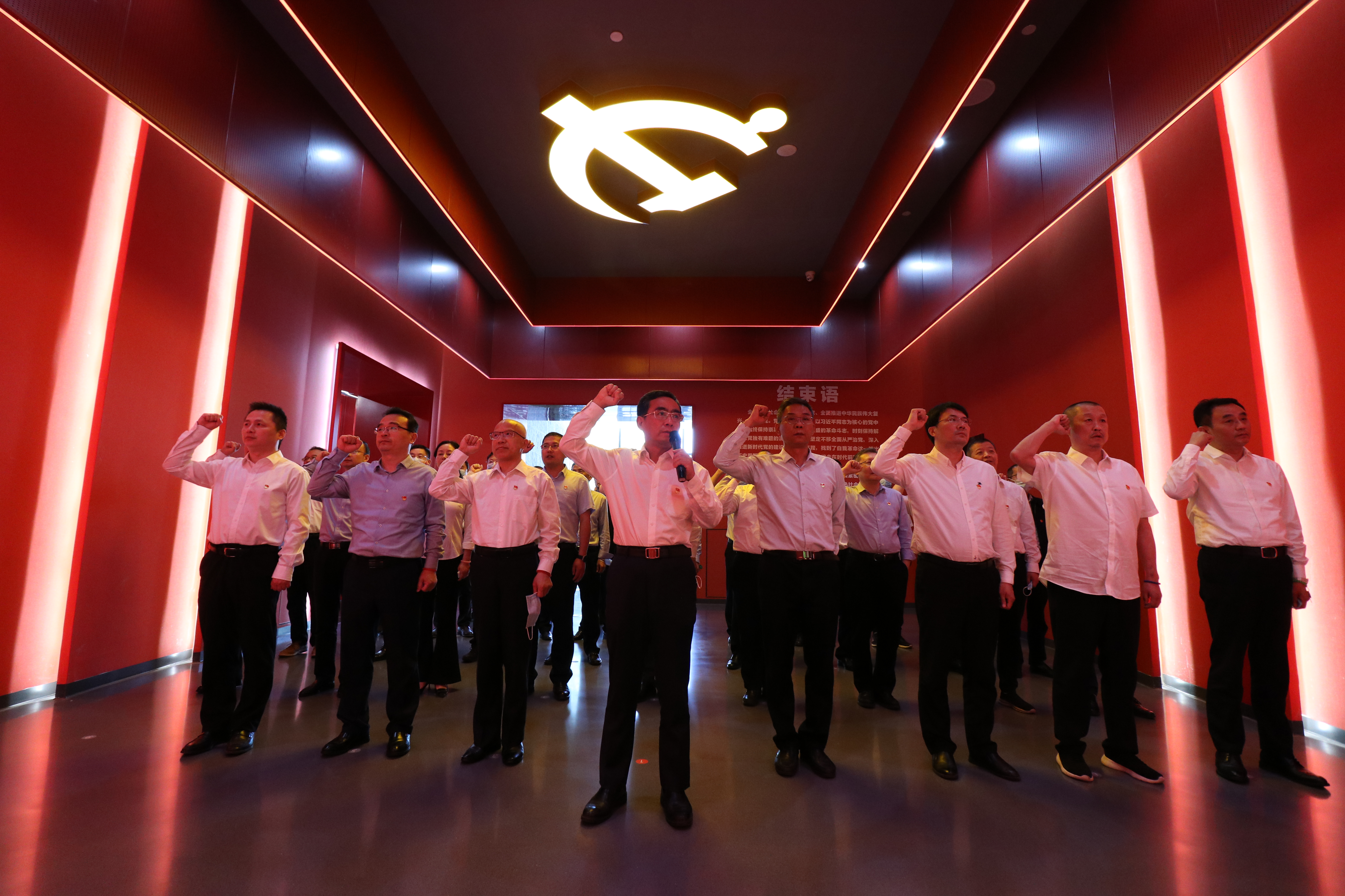 參觀結束前,集團公司黨委副書記、總經理王思軍同志帶領大家重溫入黨誓詞,進一步堅定了理想信念,夯實了廉潔從業的思想基礎,激發了不忘初心、繼續前進的強大動力。通過此次參觀學習,黨員領導干部一致表示,將始終秉承“守初心、明法紀、知敬畏”理念,以案為戒,守住底線、不踩紅線、不碰高壓線,把好人生“總開關”,永葆清正廉潔本色。