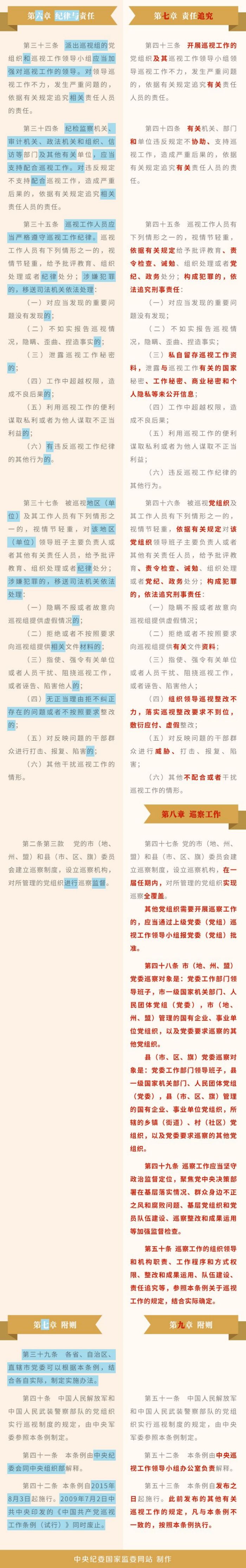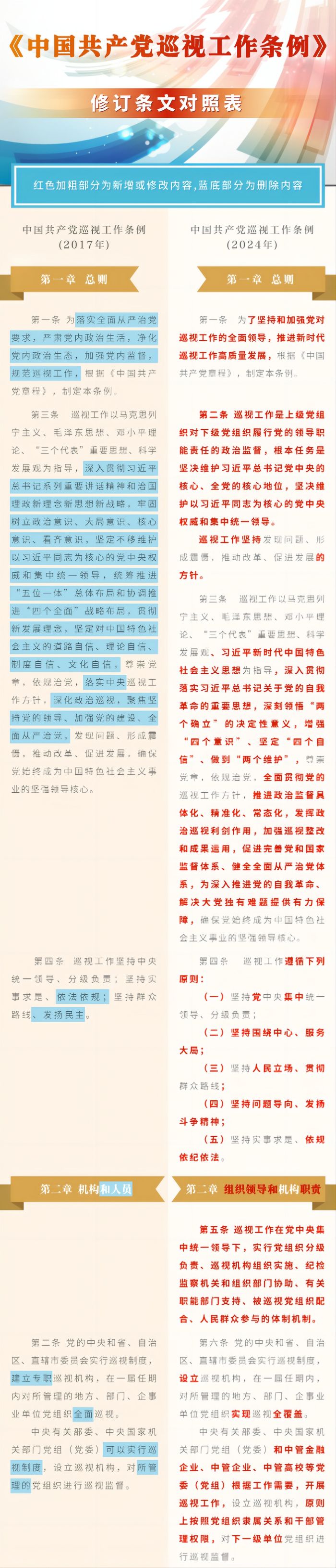 《中國共產黨巡視工作條例》修訂條文對照表