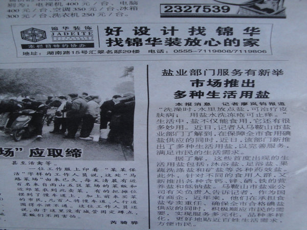 《皖江晚報》:鹽業部門服務有新舉