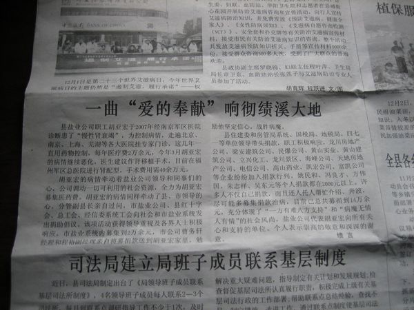 胡亞宏的病情牽動著鹽業(yè)公司領(lǐng)導(dǎo)和同事們的心,公司調(diào)動一切可利用的社會資源,全力為胡亞宏募集醫(yī)藥費。胡亞宏的病情同樣牽動了縣、市領(lǐng)導(dǎo)的心,分管副縣長親自過問,市鹽業(yè)公司、縣紅十字會、總工會、經(jīng)信委系統(tǒng)工會向社會和市鹽業(yè)系統(tǒng)發(fā)出捐助倡議。該項活動獲得領(lǐng)導(dǎo)重視及各界人士積極響應(yīng),市鹽業(yè)系統(tǒng)內(nèi)募集到2萬余元,市公司曹務(wù)軒經(jīng)理和程裕副經(jīng)理親自將募捐款送到胡亞宏家里,勉勵他堅定信心,戰(zhàn)勝病魔。
