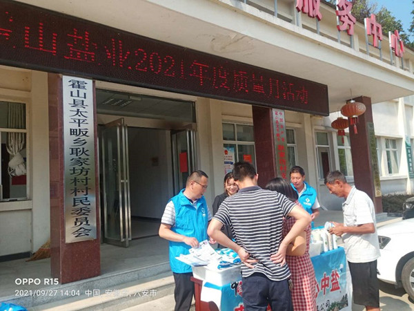 9月27日,霍山縣鹽業(yè)公司利用到太平畈鄉(xiāng)耿家坊村扶貧之際,結(jié)合鹽業(yè)發(fā)展公司《旺季市場(chǎng)營(yíng)銷宣傳工作方案》“四進(jìn)一參”相關(guān)要求,開(kāi)展了“質(zhì)量月”主題宣傳活動(dòng)。