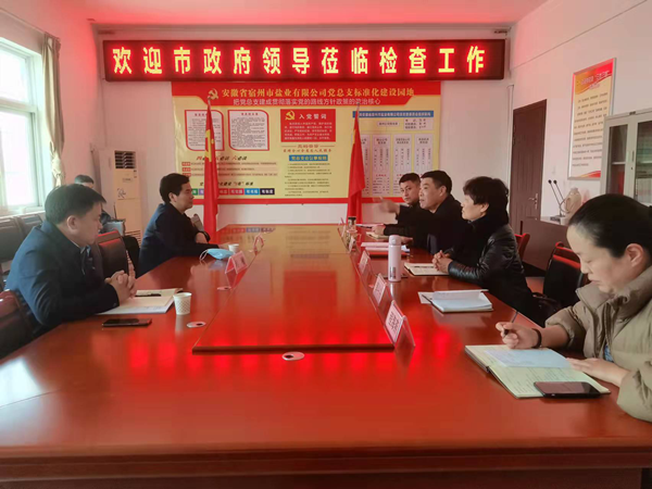 3月1日,宿州市副市長楊澤勝到宿州市鹽業(yè)公司調(diào)研指導(dǎo)工作,市政府辦副主任程利陪同調(diào)研。