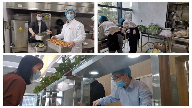突如其來的疫情,對環境集團職工餐廳產生了較大的影響,超過半數的餐廳工作人員被隔離在家,而且由于全體員工在公司隔離,一日三餐均需在職工餐廳就餐,面對激增的工作量,餐廳工作人員產生了較為明顯為畏難情緒,面對這一情況,環境集團黨員隊伍沖鋒在前,各支部輪流安排黨員先鋒崗前往餐廳后廚幫忙,在廚師的安排下洗菜摘菜、打飯洗碗,提供力所能及的幫助,全力保障職工每頓都能吃上新鮮可口的飯菜。