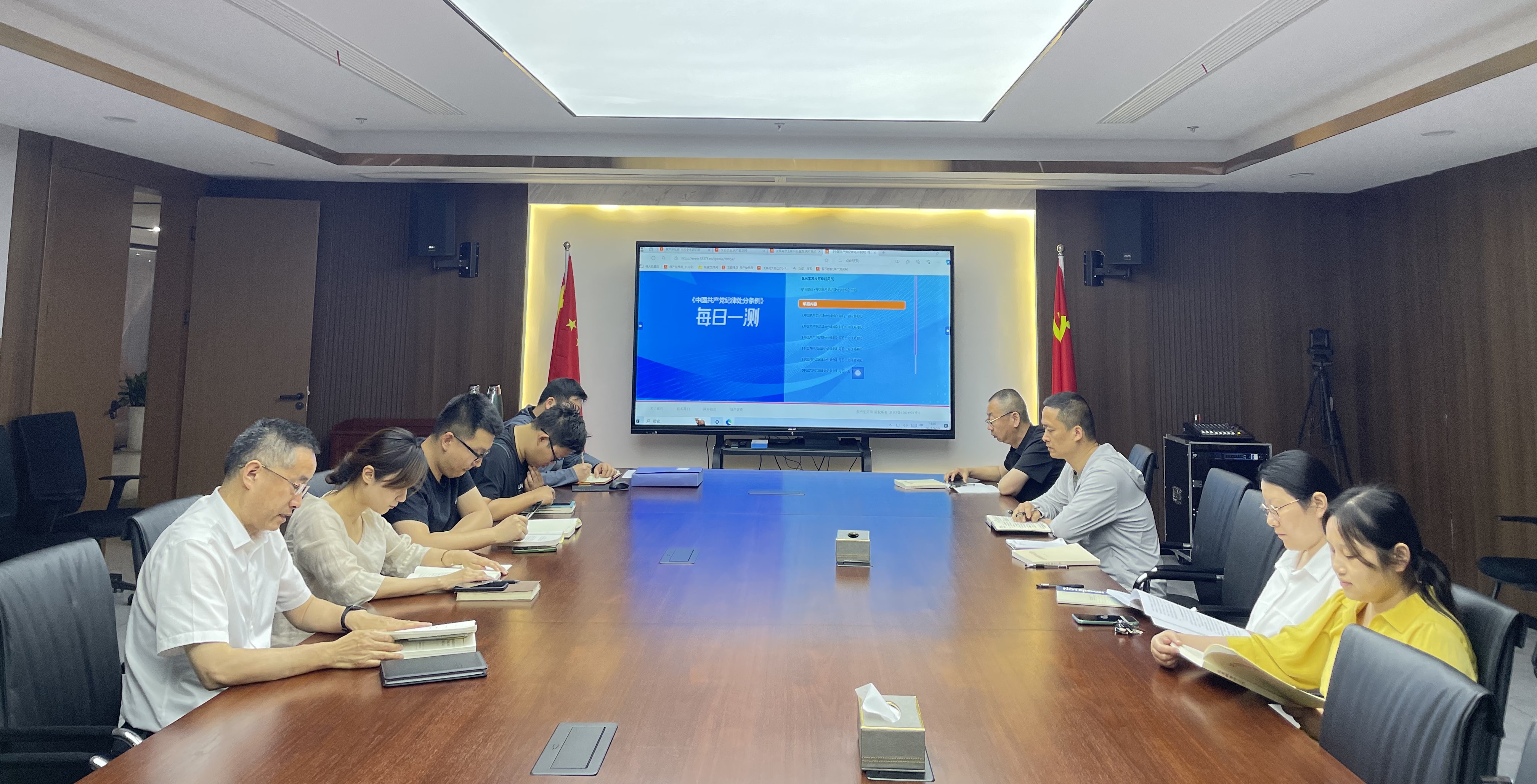 分享會上,通過交流推薦、集中自學、知識競答等多種形式,原原本本學習了《中國共產黨紀律處分條例》《習近平新時代中國特色社會主義思想專題摘編》等學習資料,持續深入學習習近平總書記有關黨紀學習教育重要講話精神。