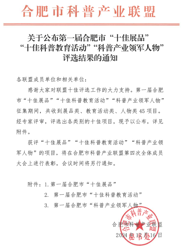 合肥鹽業“鹽”學之旅獲評合肥市 “十佳科普教育活動”