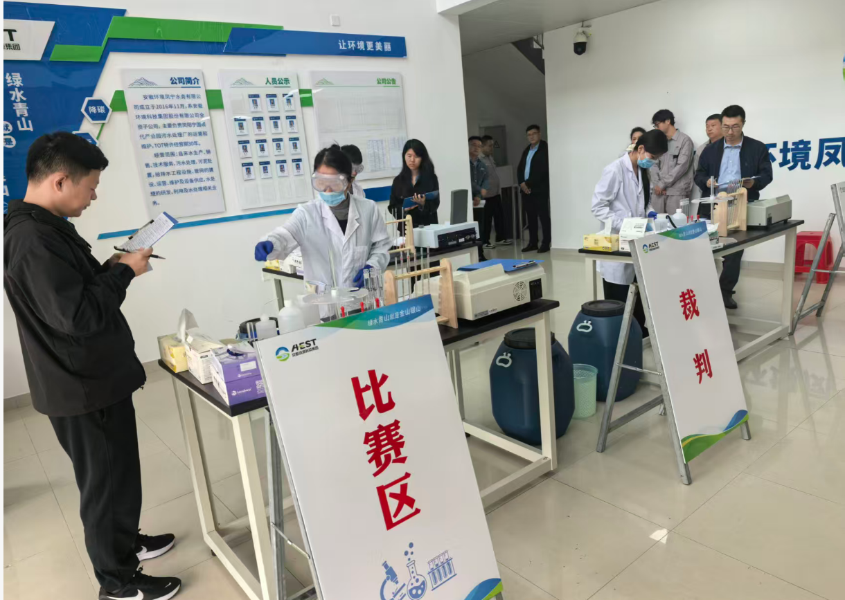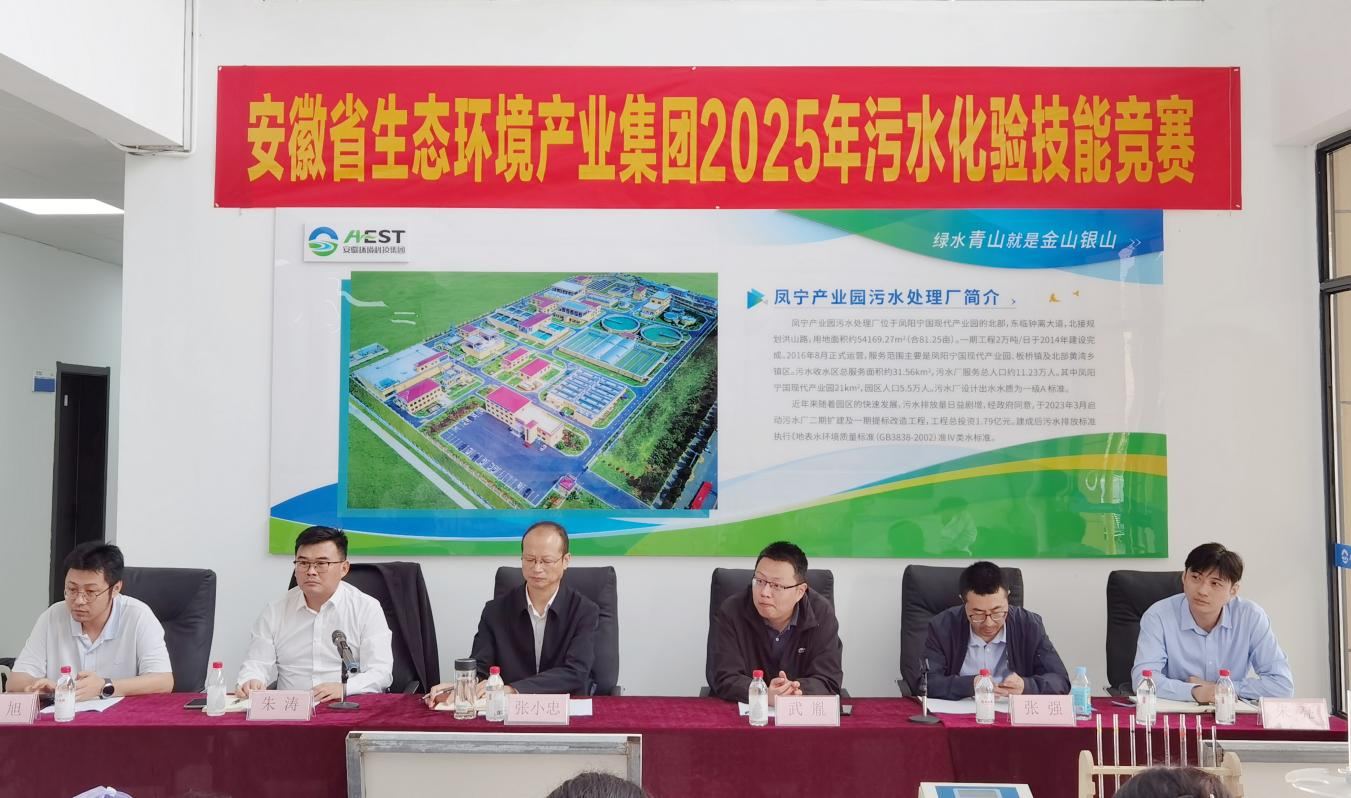 2025年10月17日,由安徽省生態環境產業集團有限公司主辦、安徽環境科技集團承辦的“2025年污水化驗技能競賽”在鳳陽寧國現代產業園污水處理廠成功舉辦。本次競賽以“水質氨氮測定(納氏試劑分光光度法)”為核心內容,通過模擬實操全面檢驗化驗人員的專業技能、規范意識和數據處理能力,是集團公司加強產業工人隊伍建設、提升一線人才素質的重要實踐。集團公司黨委副書記、職工董事、工會主席張小忠出席活動并致辭。